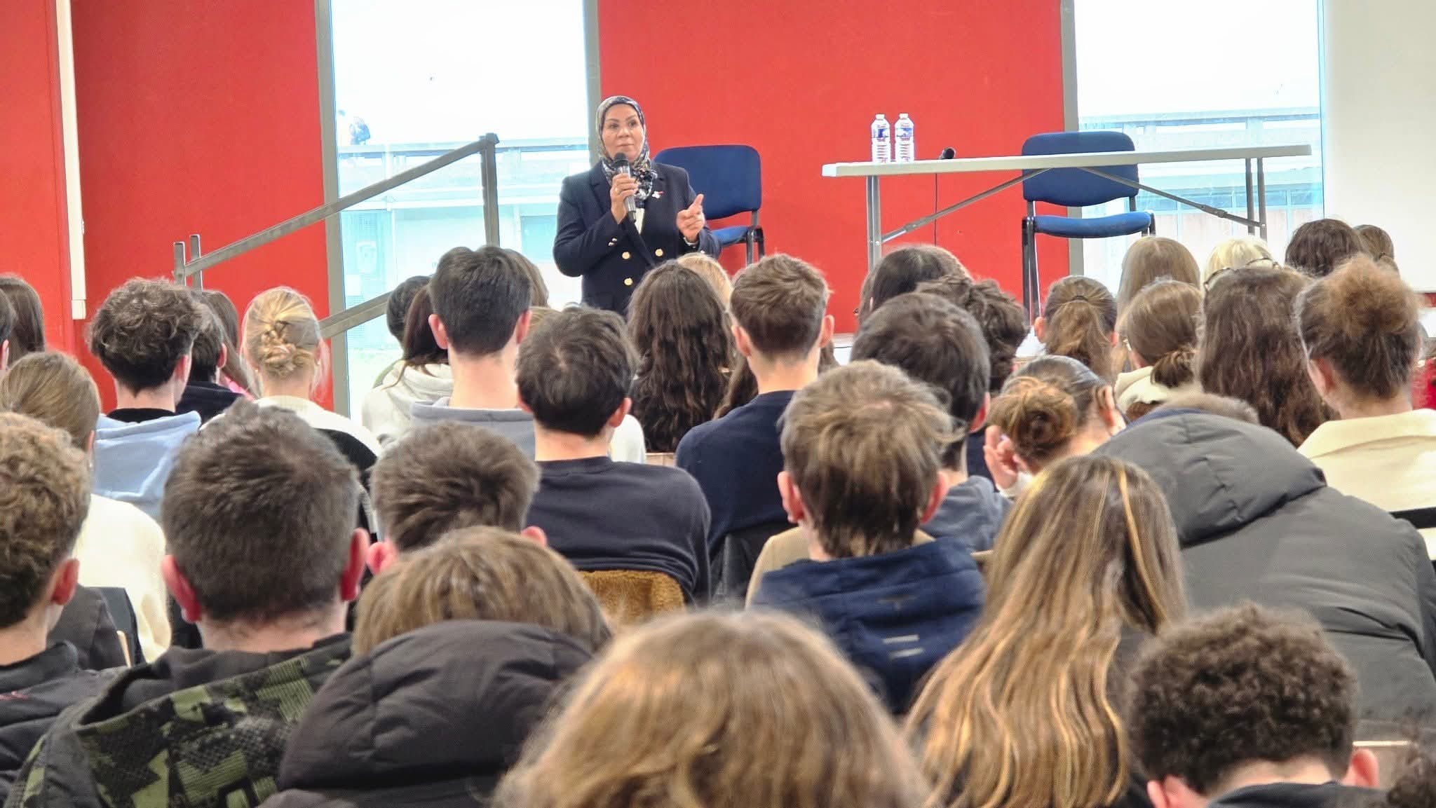 Madame IBN ZIATEN a également exprimé sa profonde joie de pouvoir compter parmi l’assemblée les professeurs, de nombreux professionnels engagés, ainsi que l’ensemble du bureau de l’Ordre des avocats de Dieppe. Leur présence attentive et bienveillante a grandement contribué à la richesse des échanges et à la profondeur de ce moment de partage et de réflexion collective. Elle a tenu à adresser un remerciement tout particulier à Monsieur le Maire de Dieppe pour sa présence. Sa participation a revêtu une importance symbolique forte, montrant aux jeunes combien l’engagement des élus, le respect des valeurs républicaines et le vivre-ensemble sont essentiels à la construction d’une société unie et solidaire. Madame IBN ZIATEN rappelle avec conviction que ces élèves représentent notre avenir. Il est de notre responsabilité collective de les accompagner, de les encourager, de les écouter et de leur transmettre la force de croire en eux-mêmes. Elle espère avoir pu, à travers son témoignage et ses échanges, ouvrir certains regards, toucher quelques cœurs… et surtout allumer cette étincelle intérieure, ce moteur intime, qui les guidera sur le chemin de la confiance, de l’engagement et de la réussite.